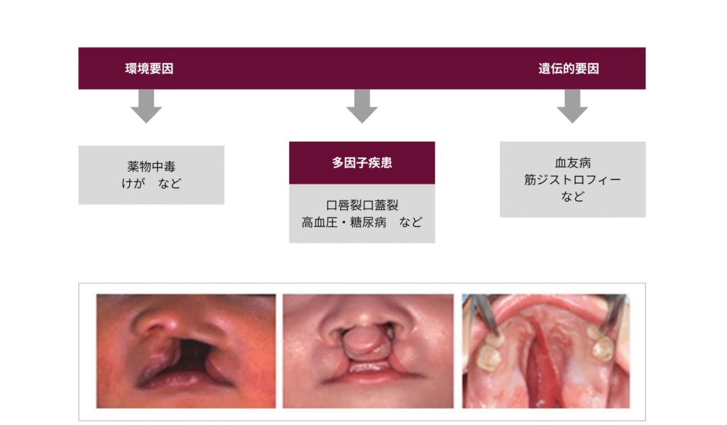 口唇裂口蓋裂は多因子疾患であり、その発症要因はいまだ明らかになっていない。