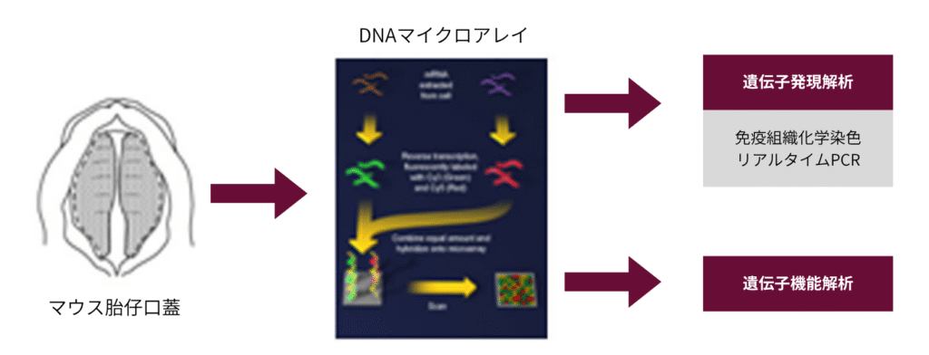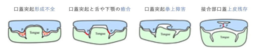 口蓋癒合過程の途中で、遺伝子の機能異常が起こると口蓋裂を発症する