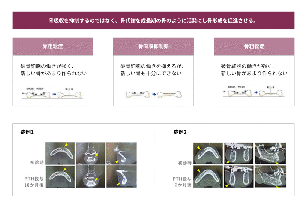 テリパラチド(PTH): 骨粗鬆症治療薬の低用量の間欠的投与により、